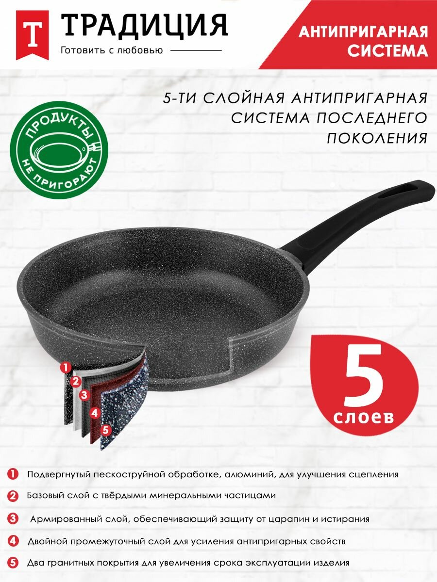 Сковорода антипригарная литая 26 см Антрацит ТМ Традиция готовить с любовью