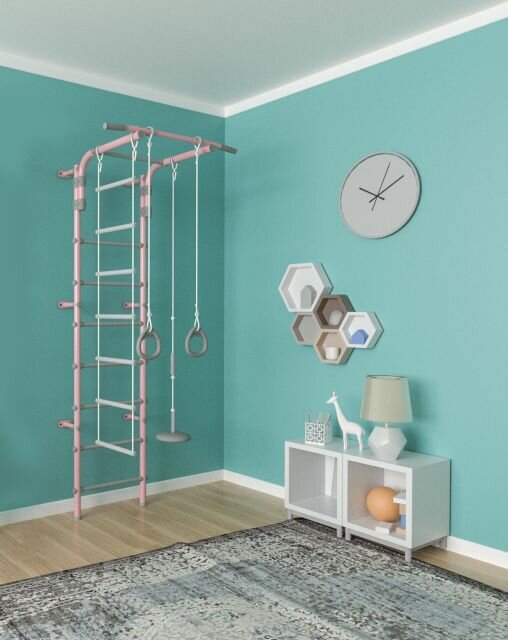 Спортивный комплекс на базе шведской стенки Формула здоровья Pastel 2 (Розовый-Серый) - пристенный ДСК для дома