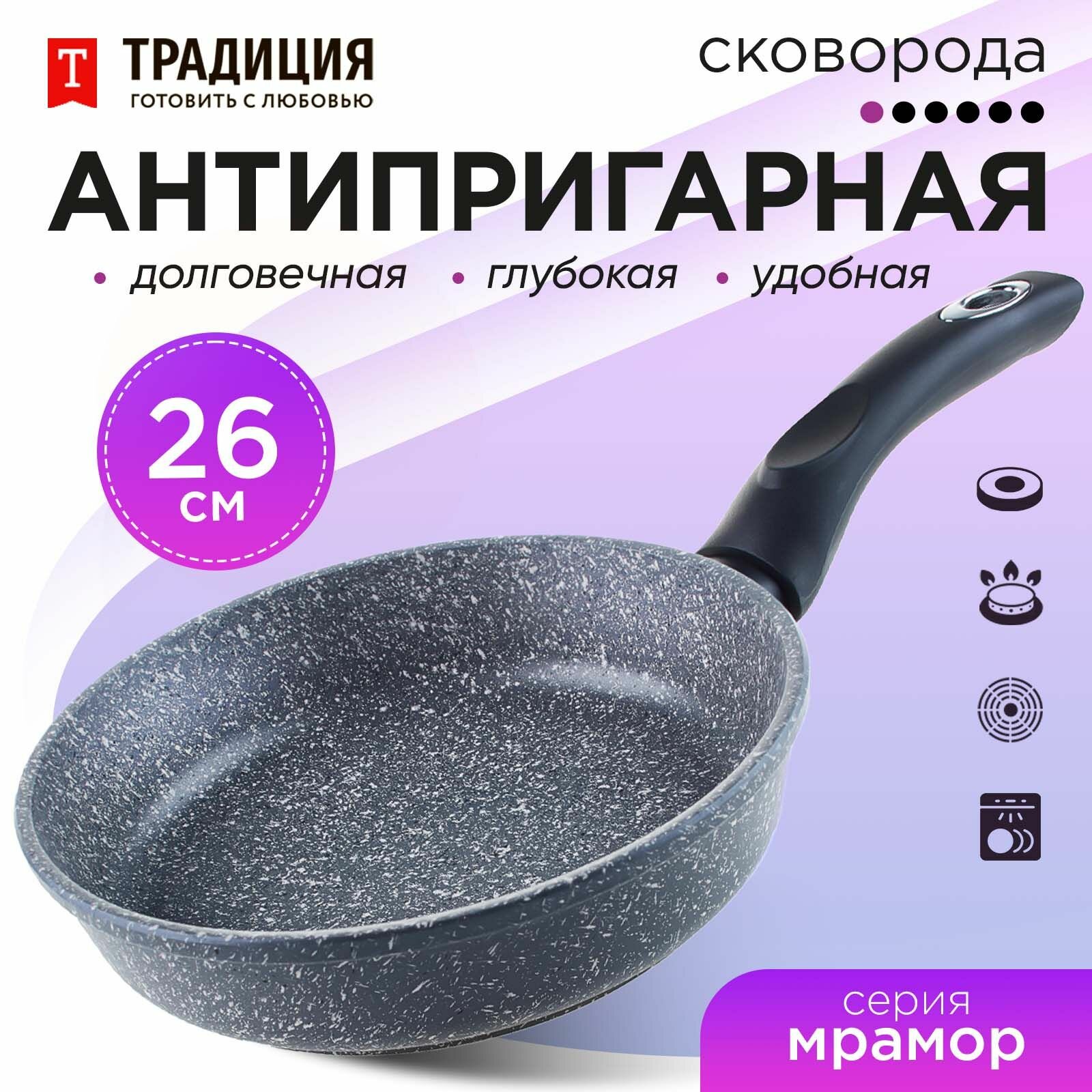 Сковорода Традиция Мрамор антипригарное покрытие литая 26см / ТМ2261