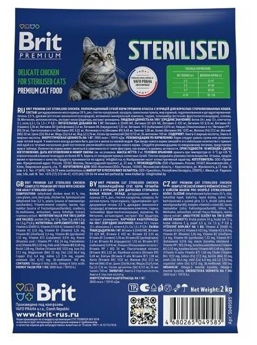 Brit Premium Cat Sterilized Chicken 2кг курица сухой корм для стерилизованных кошек