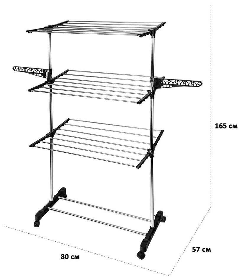 Casa Si Сушилка 3-х ярусная напольная 80х57х165 см EL Casa на колесиках сушилки для белья в Сысерть