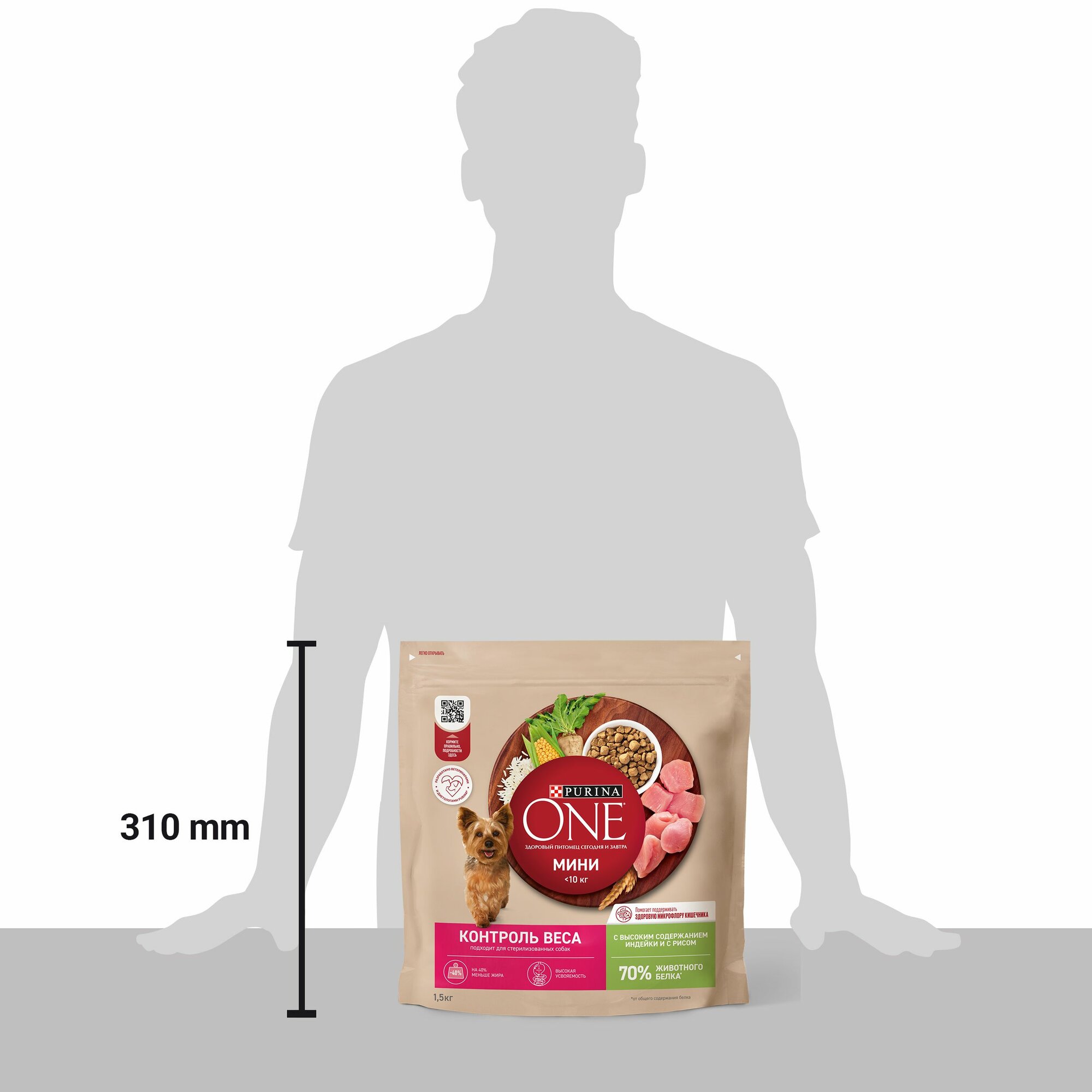 PURINA ONE мини Здоровый вес 1,5 кг сухой корм для собак мелких пород, склонных к набору веса, с высоким содержанием индейки и с рисом