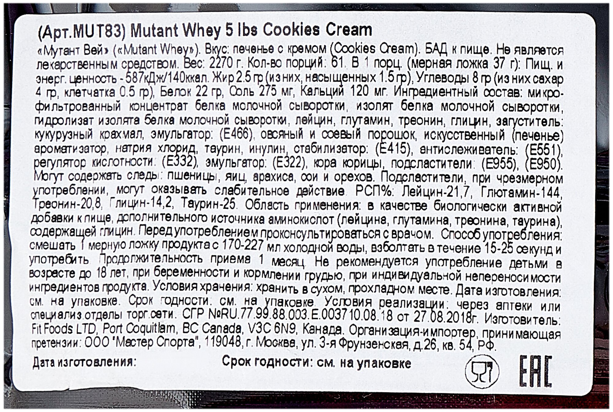 Протеин Mutant Whey, 2270 гр., печенье-крем