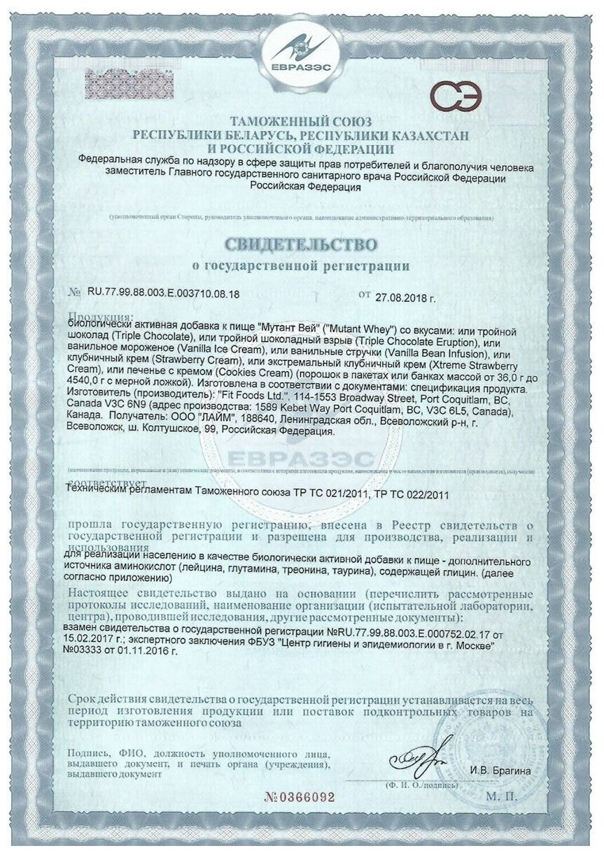 Сывороточный протеин Mutant Whey 1816 гр Тройной шоколад и Ванильное мороженое