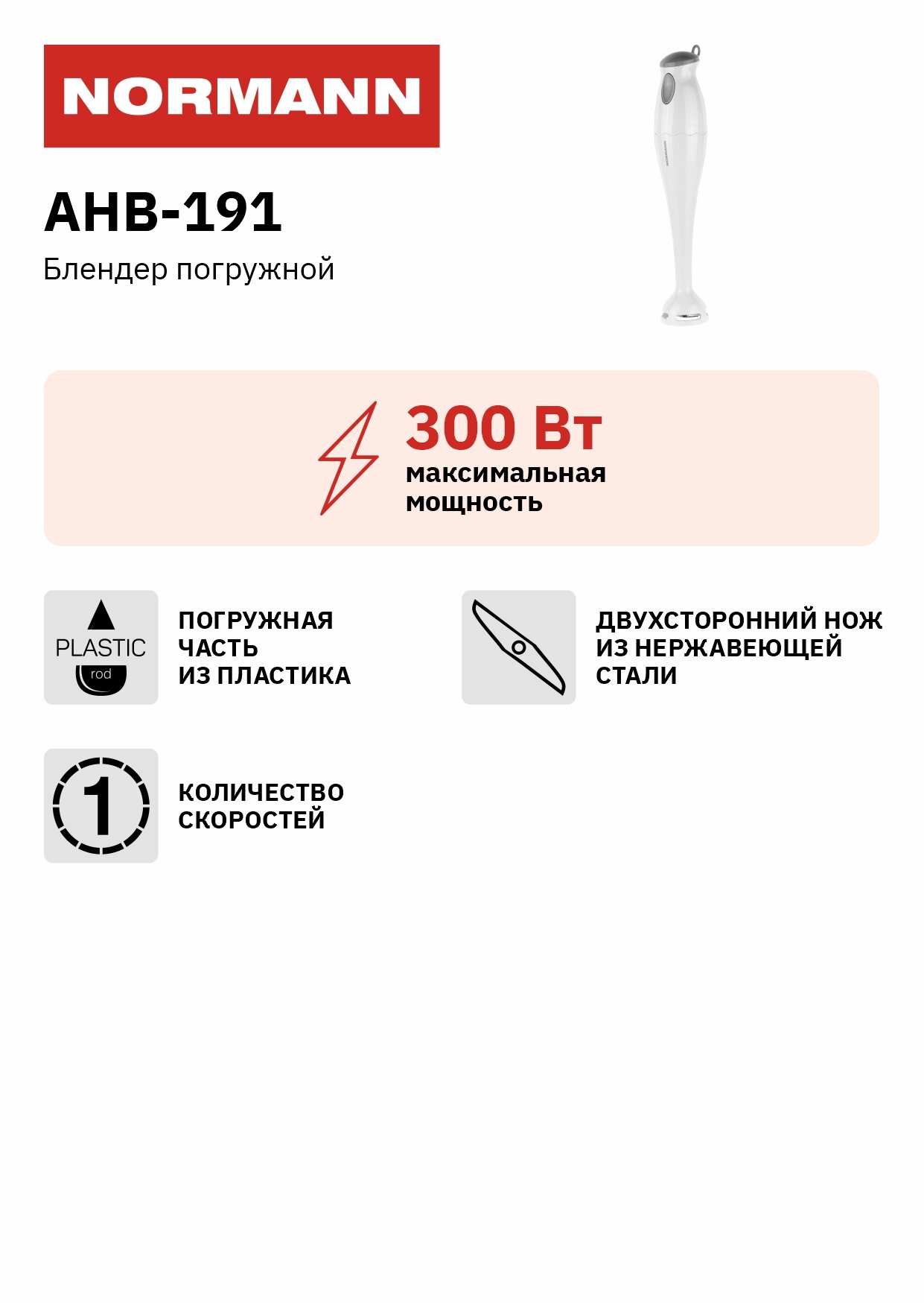 Блендер погружной AHB-191 NORMANN (300 Вт; 1 скор.)
