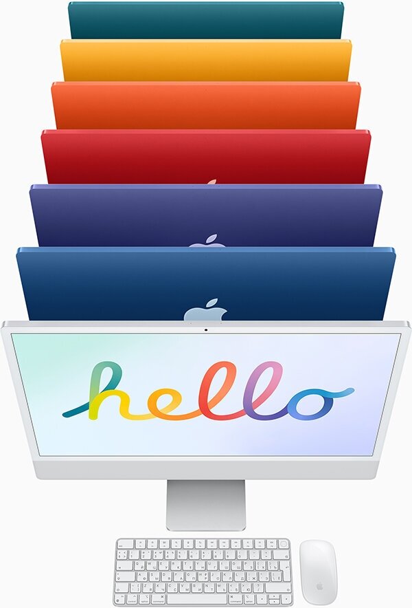 23.5" Моноблок Apple iMac 24" 2021 г. MGPL3, 4480x2520, Apple M1 2.064 ГГц, RAM 8 ГБ, SSD 512 ГБ, Apple M1 8-Core, MacOS, синий