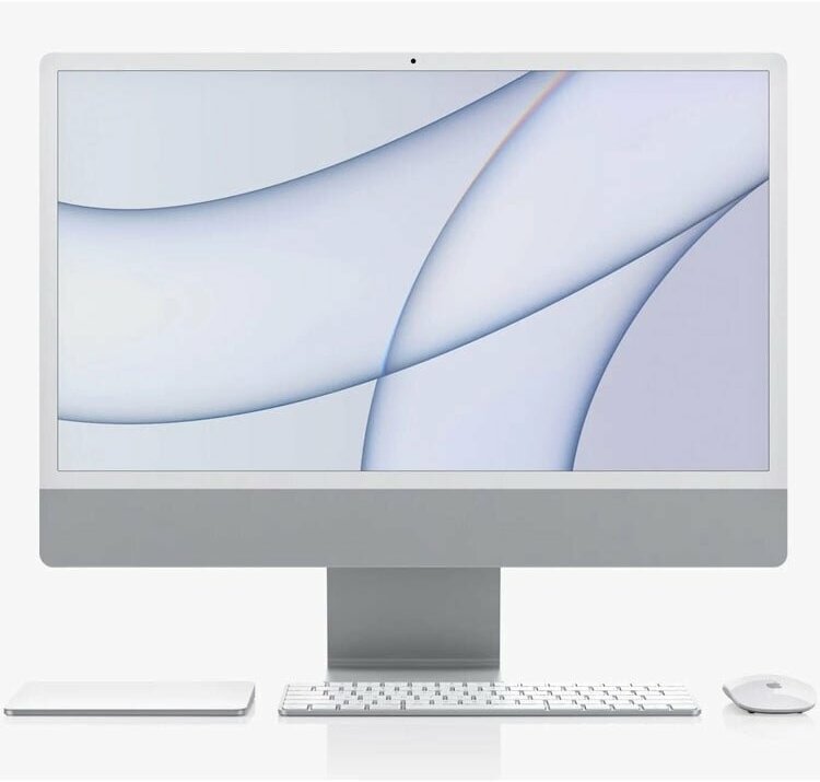 23.5" Моноблок Apple iMac 24" 2021 г. MGPC3, 4480x2520, Apple M1 2.064 ГГц, RAM 8 ГБ, SSD 256 ГБ, Apple M1 8-Core, MacOS, серебристый