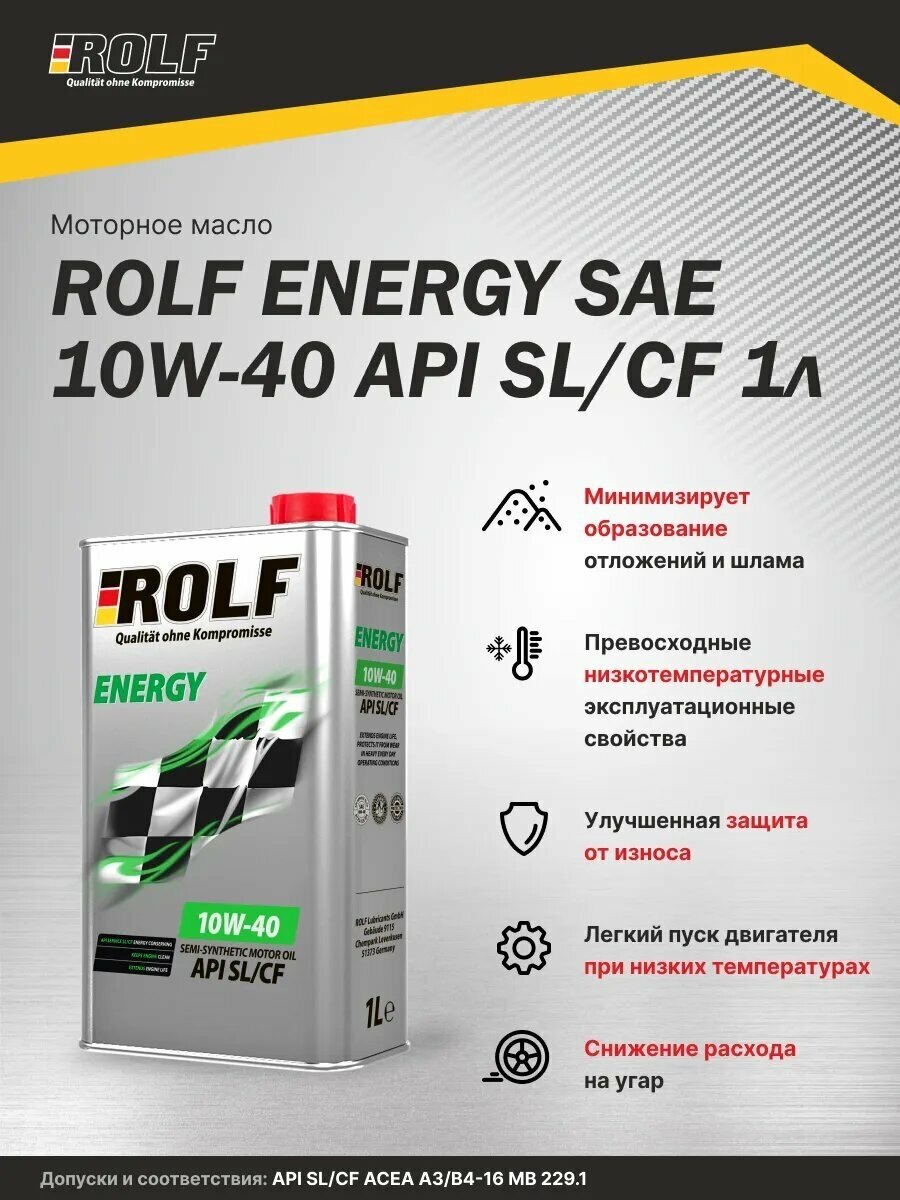 ROLF Rolf Energy Sae 10w40 Api Sl/Cf 1л (Полусинт.)