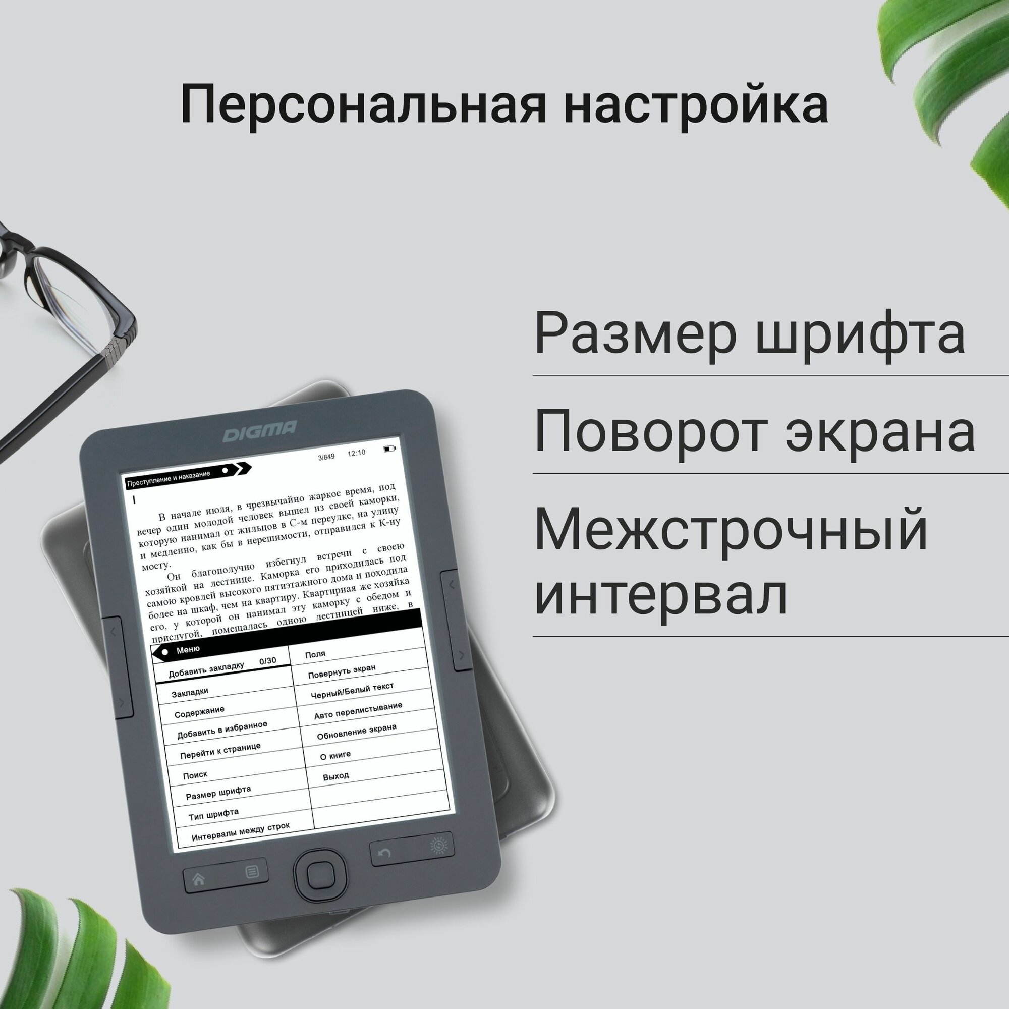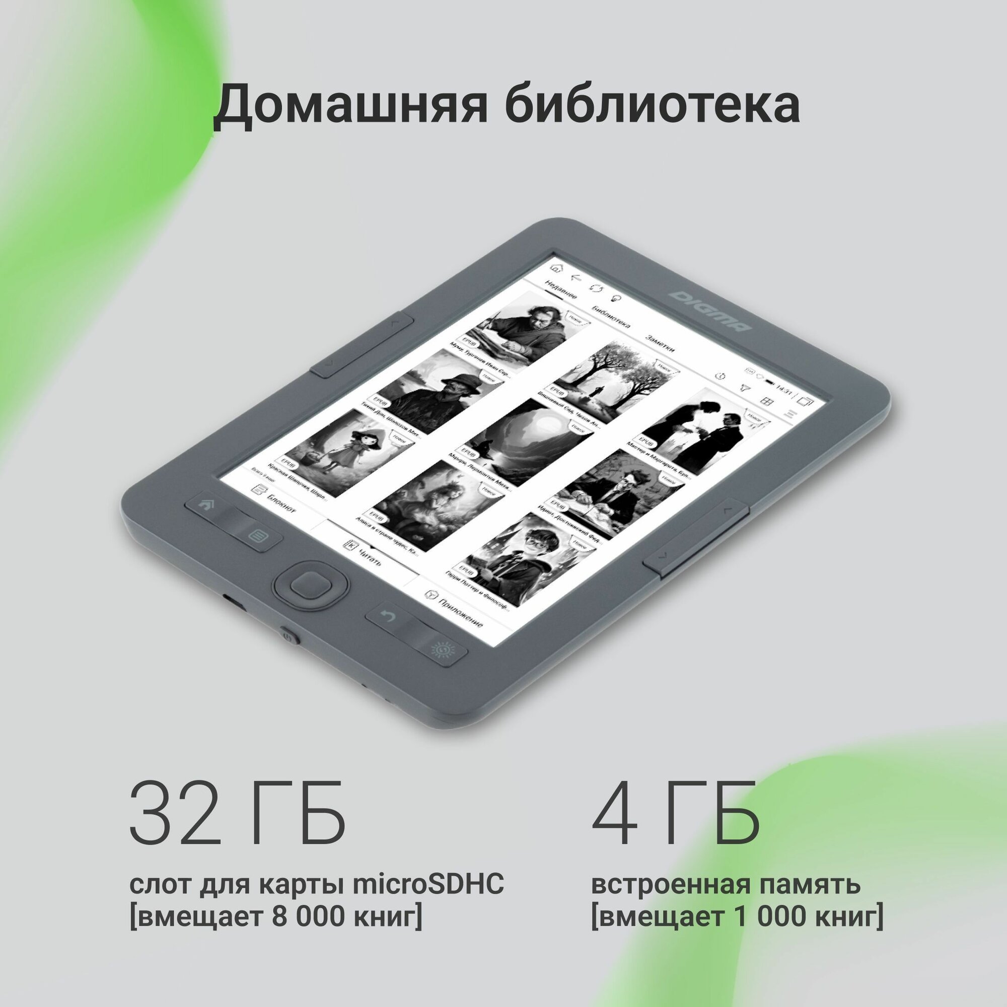 Электронная книга 6" Digma K1 E-Ink, 4Gb, темно-серый