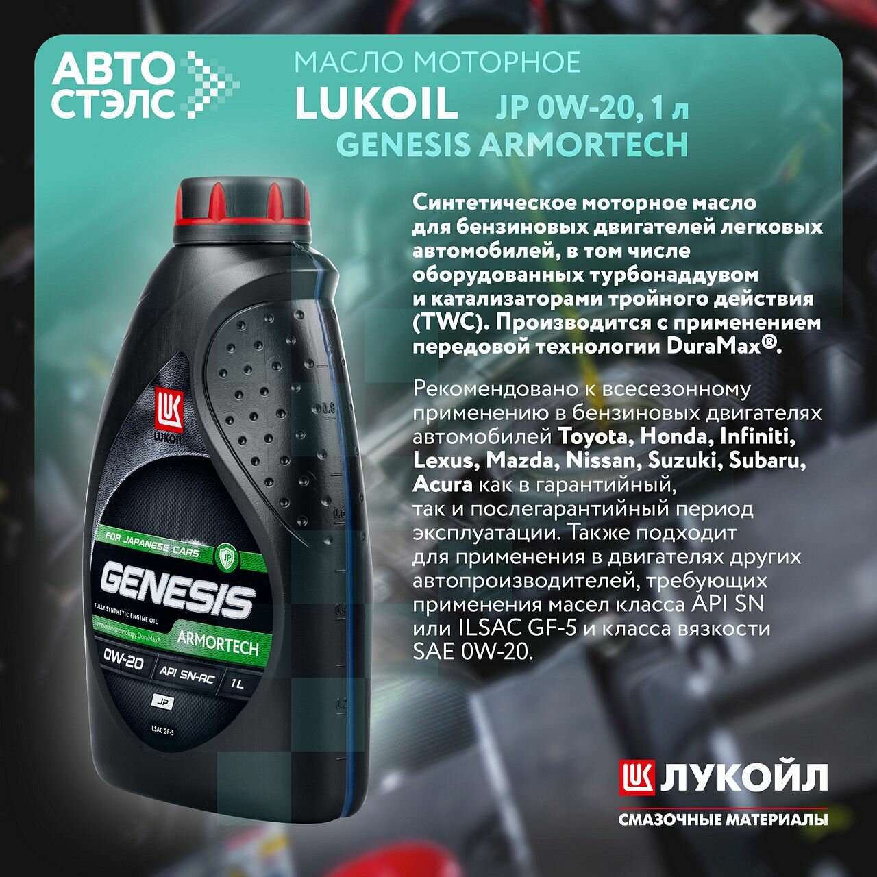 LUKOIL GENESIS ARMORTECH JP 0W-20 масло моторное синтетическое, 1 л