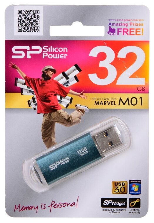 Флешка Silicon Power Marvel M01 32 ГБ, 1 шт., синий