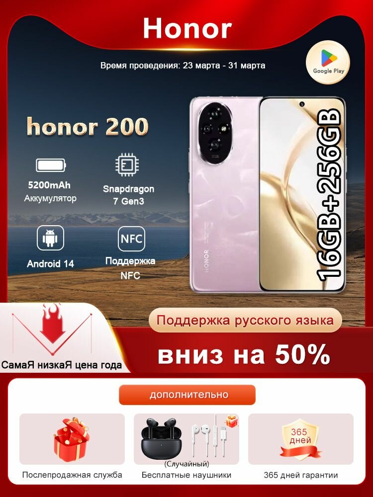 Honor Смартфон 200 16/256 ГБ, поддержка Google\ Русский CN , черный
