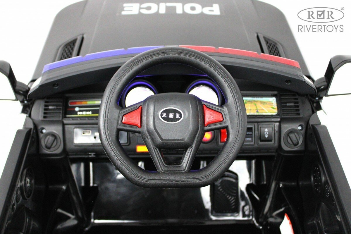 Электромобиль RiverToys E555KX с дистанционным управлением - черный полиция