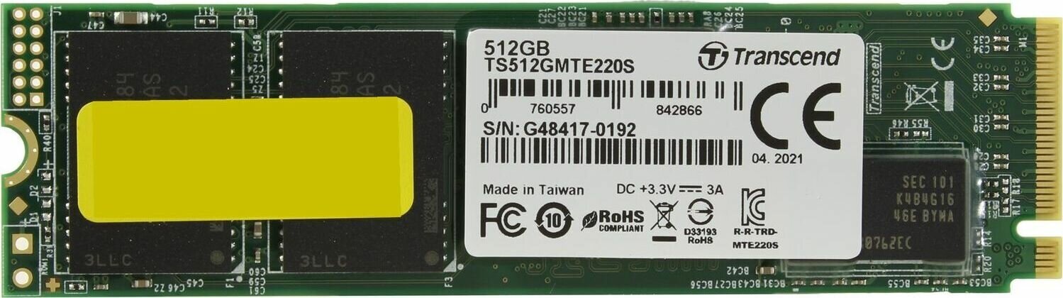 Твердотельный накопитель Transcend 512ГБ, M.2 2280, PCI-E 3.0 x4 TS512GMTE220S