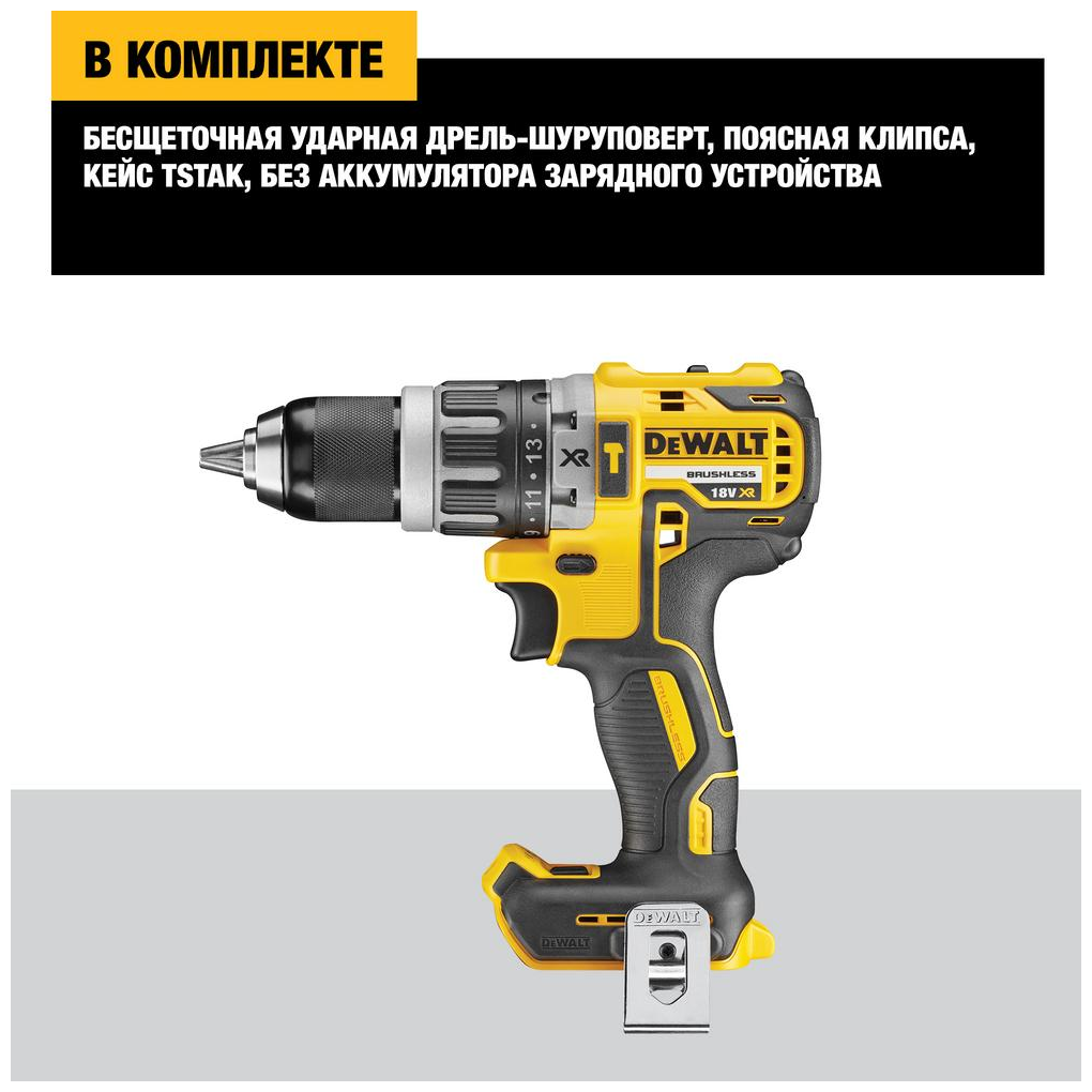 Аккумуляторная бесщеточная ударная дрель-шуруповерт DEWALT DCD796NT, 18 В, XR, 460 Вт без аккумулятора и ЗУ