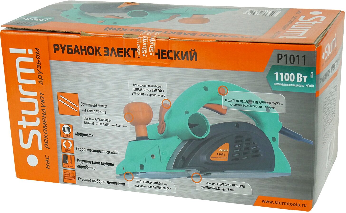 Сетевой электрорубанок Sturm! P1011, без аккумулятора, 1100 Вт синий/черный