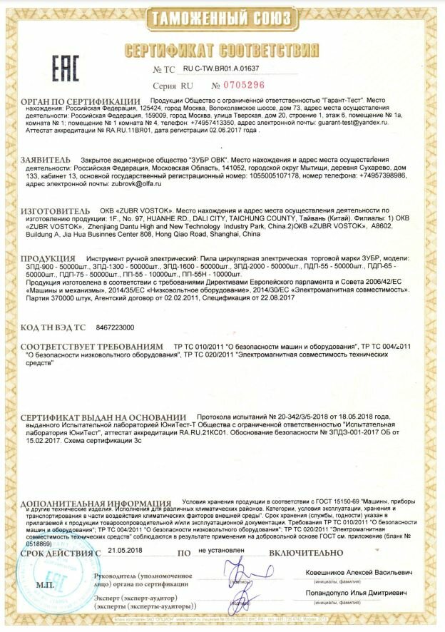 Пила дисковая электрическая Зубр Профессионал ПДП-65 190 мм 1600 Вт