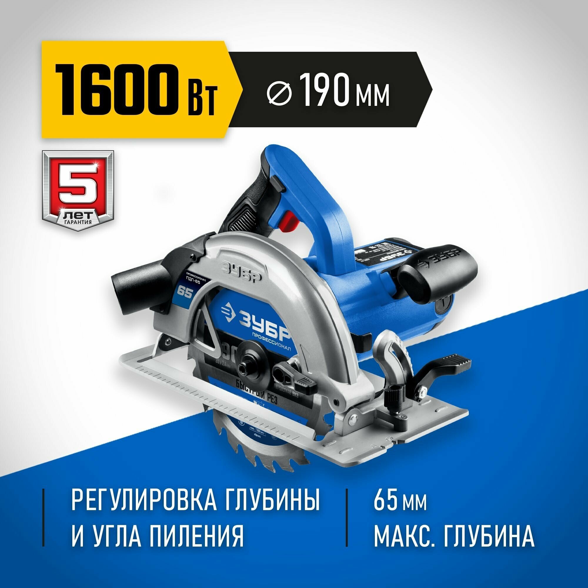 Циркулярная пила ЗУБР Профессионал 190 мм 1600 Вт ПДП-65