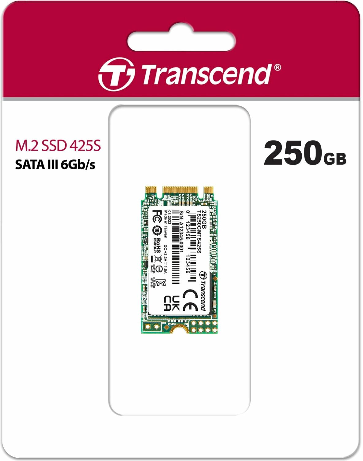 Transcend накопитель Transcend SSD 425S, 250GB, M.2(22x42mm), SATA3, 3D TLC TS250GMTS425S