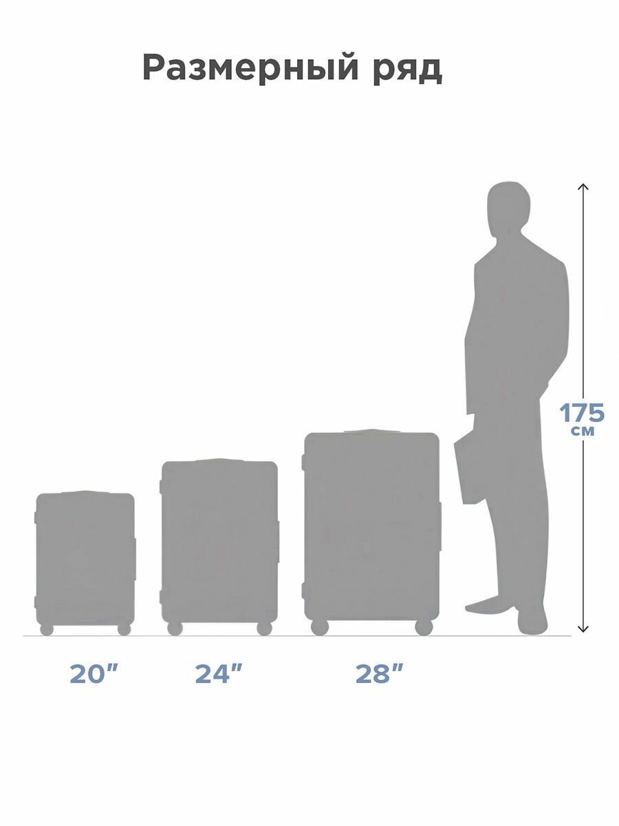 Чемодан Xiaomi NINETYGO Danube 20", серый, пластиковый, 4 колеса, блокировка замков для безопасности