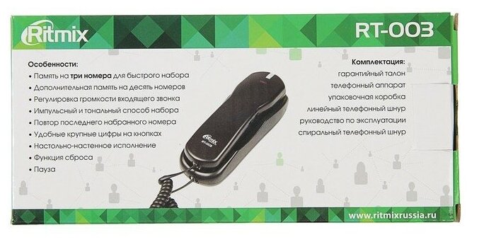 Ritmix Проводной телефон RITMIX RT-003, настольно-настенный, набор на трубке, черный RITMIX 2493220 . радиотелефоны в Сысерть