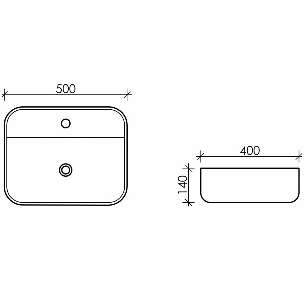 Раковина накладная Ceramicanova Element 500х400х140 прямоугольная, отв. под смеситель, белый CN5015