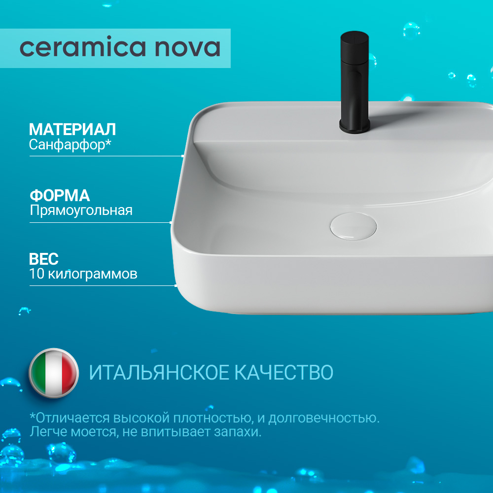 Ceramica Nova Раковина накладная с отверстием для смесителя 50х40х14 CERAMICA NOVA ELEMENT CN5015 умывальник в Сысерть