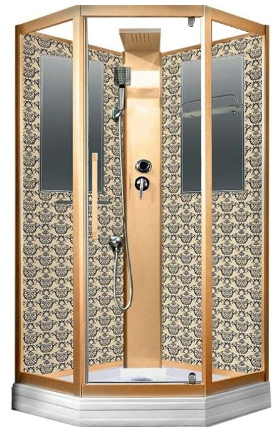 Душевая кабина NG-7799GBK (900x900х2100) низкий поддон стенки золото без крыши