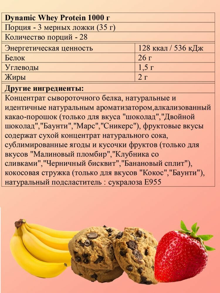 Протеин SportLine Nutrition Dynamic Whey Protein, Пломбир, спортивное питание, 1000 г