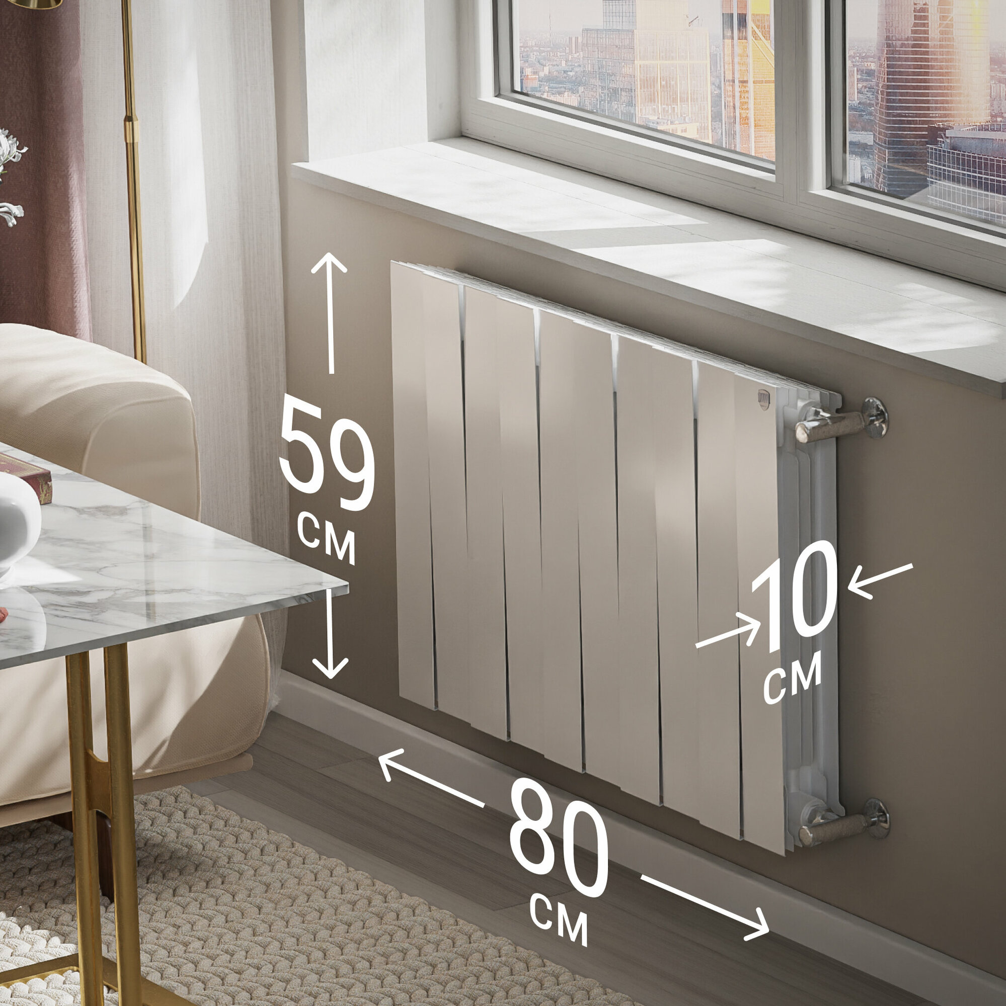 Радиатор биметаллический Royal Thermo PianoForte 500 Silver Satin 6 секции подключение боковое универсальное
