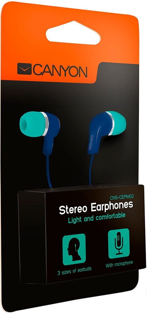 Наушники CANYON Stereo Earphones with inline microphone, Blue, cable length 1.2m, 20*15*10mm, 0.013kg