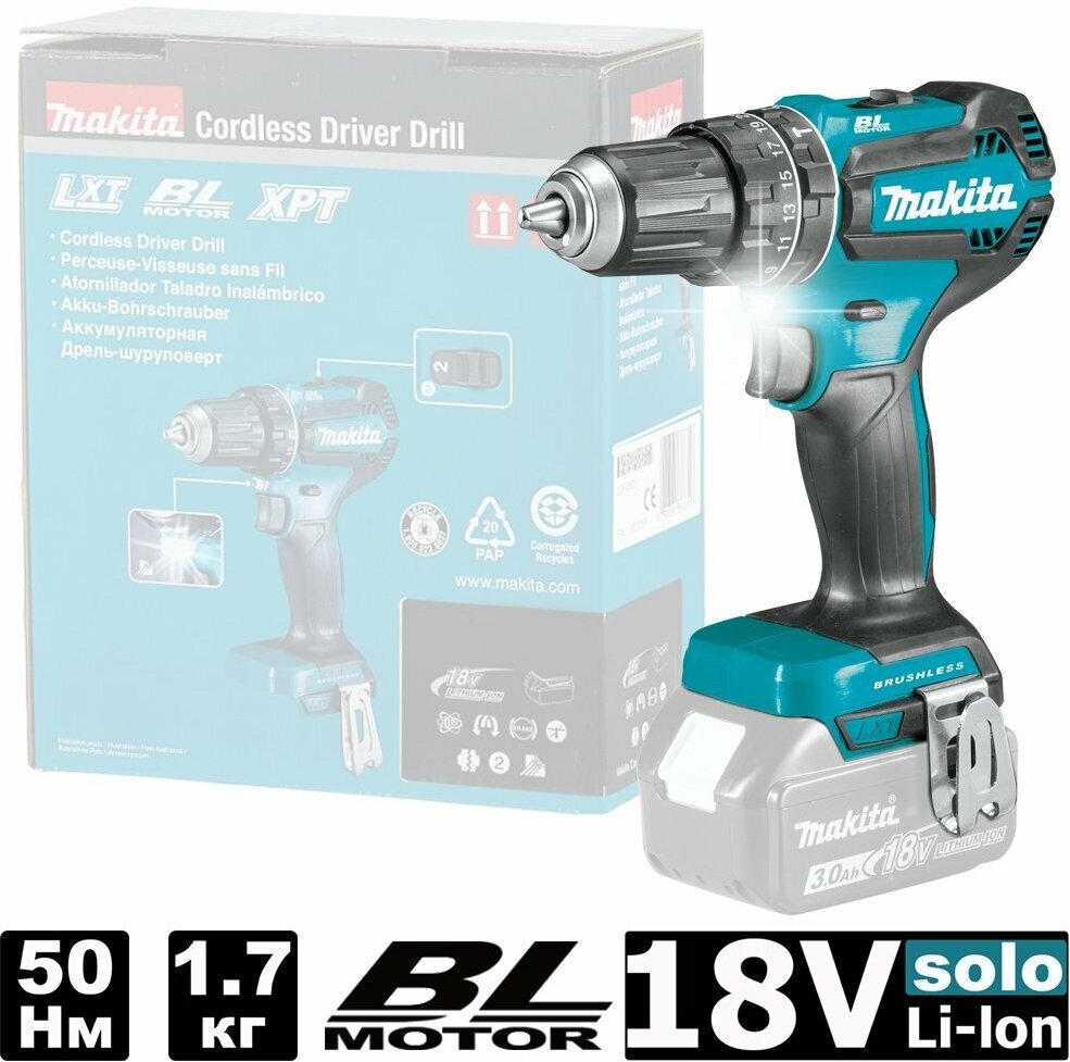 Ударная дрель-шуруповерт аккумуляторная 50Нм 18В LXT Li-Ion без акк и з/у Makita DHP485Z