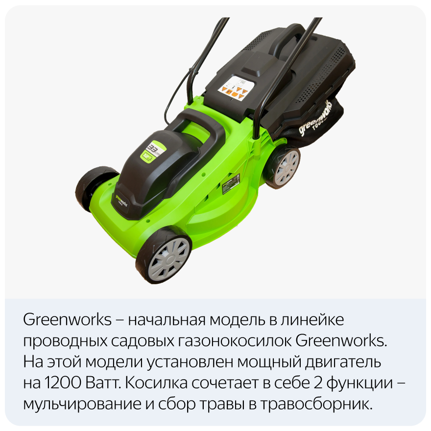 Газонокосилка электрическая Greenworks, GLM1232, 12000W, 33 см