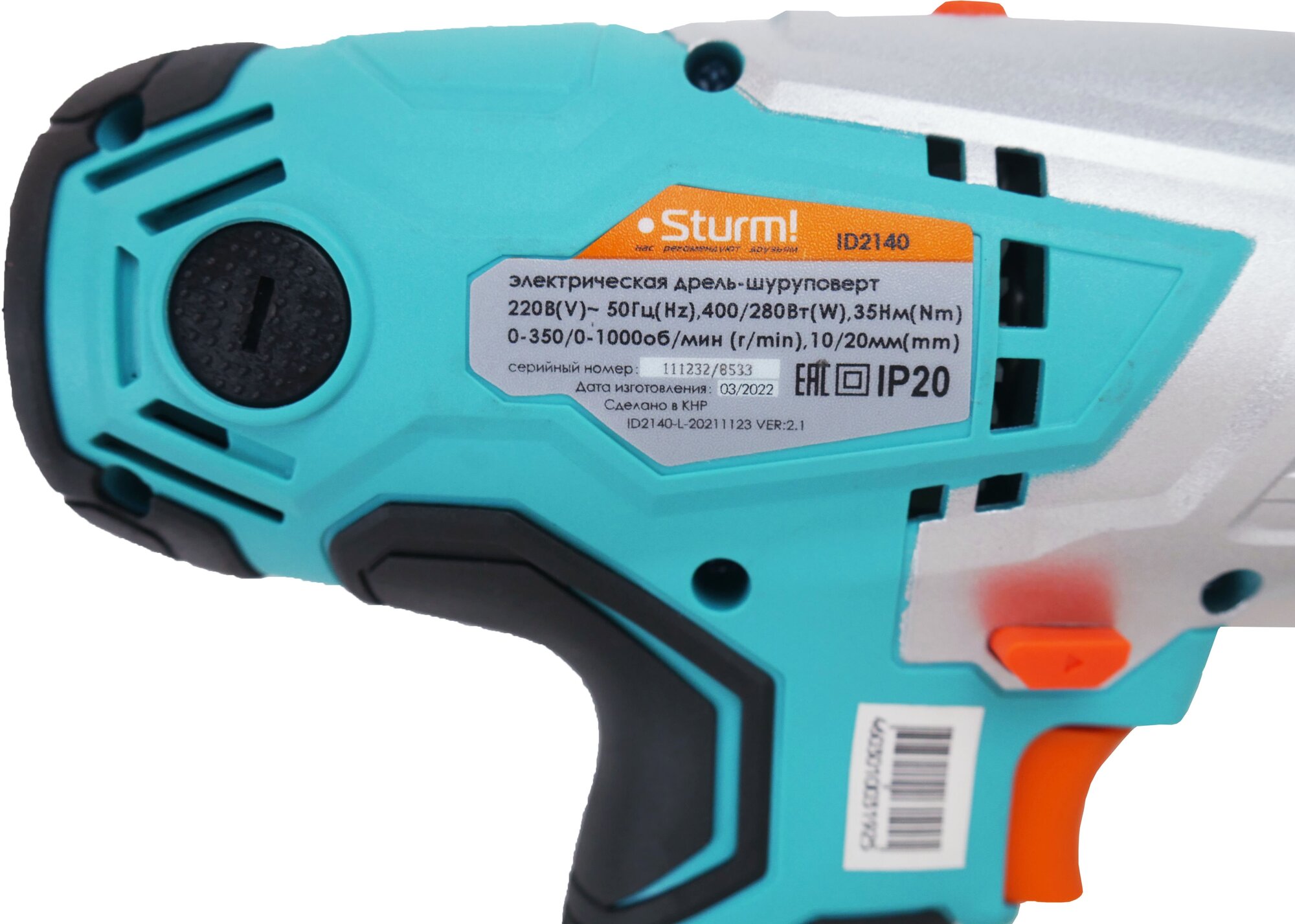 ID2140 Дрель-шуруповерт 400Вт, сеть, реверс, подсветка,провод 4м Sturm!