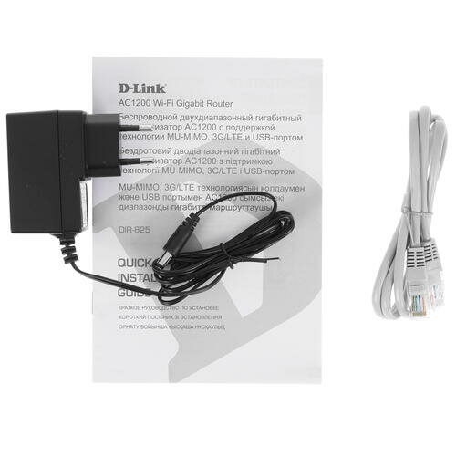 Роутер WiFi D-Link DIR-825/RU/R1, беспроводной двухдиапазонный гигабитный маршрутизатор AC1200 Wave 2 с поддержкой MU-MIMO, 3G/LTE и USB-портом черный