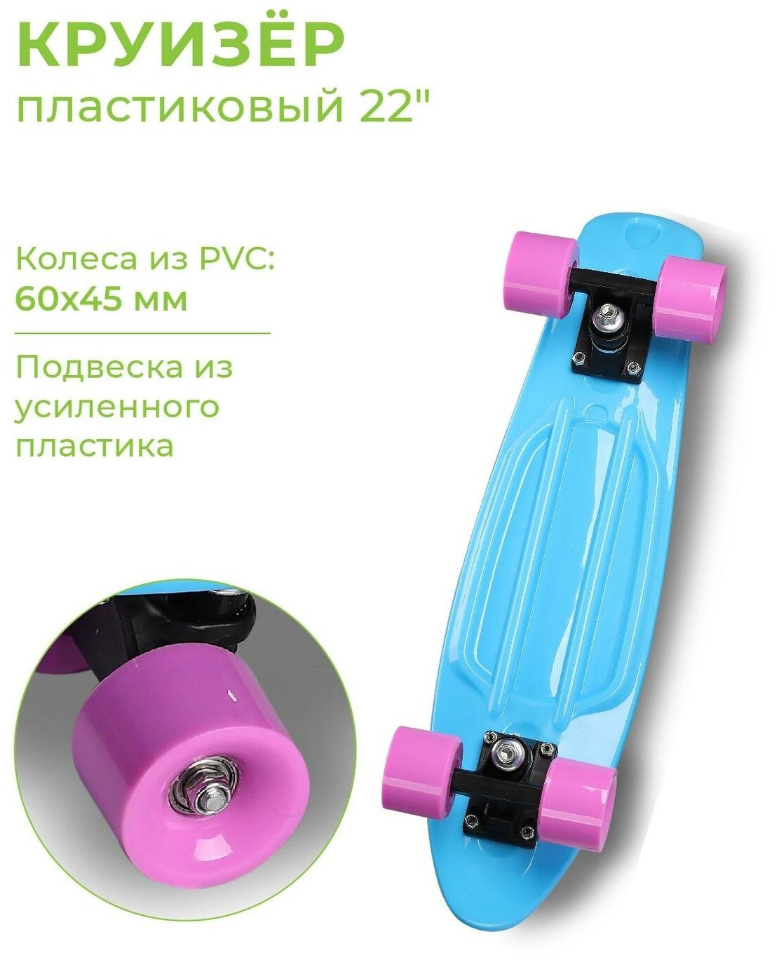 Круизер INDIGO (шасси пластиковое, 608z, колеса PVC) LS-P2206-D 56,5*15 см Бирюзовый