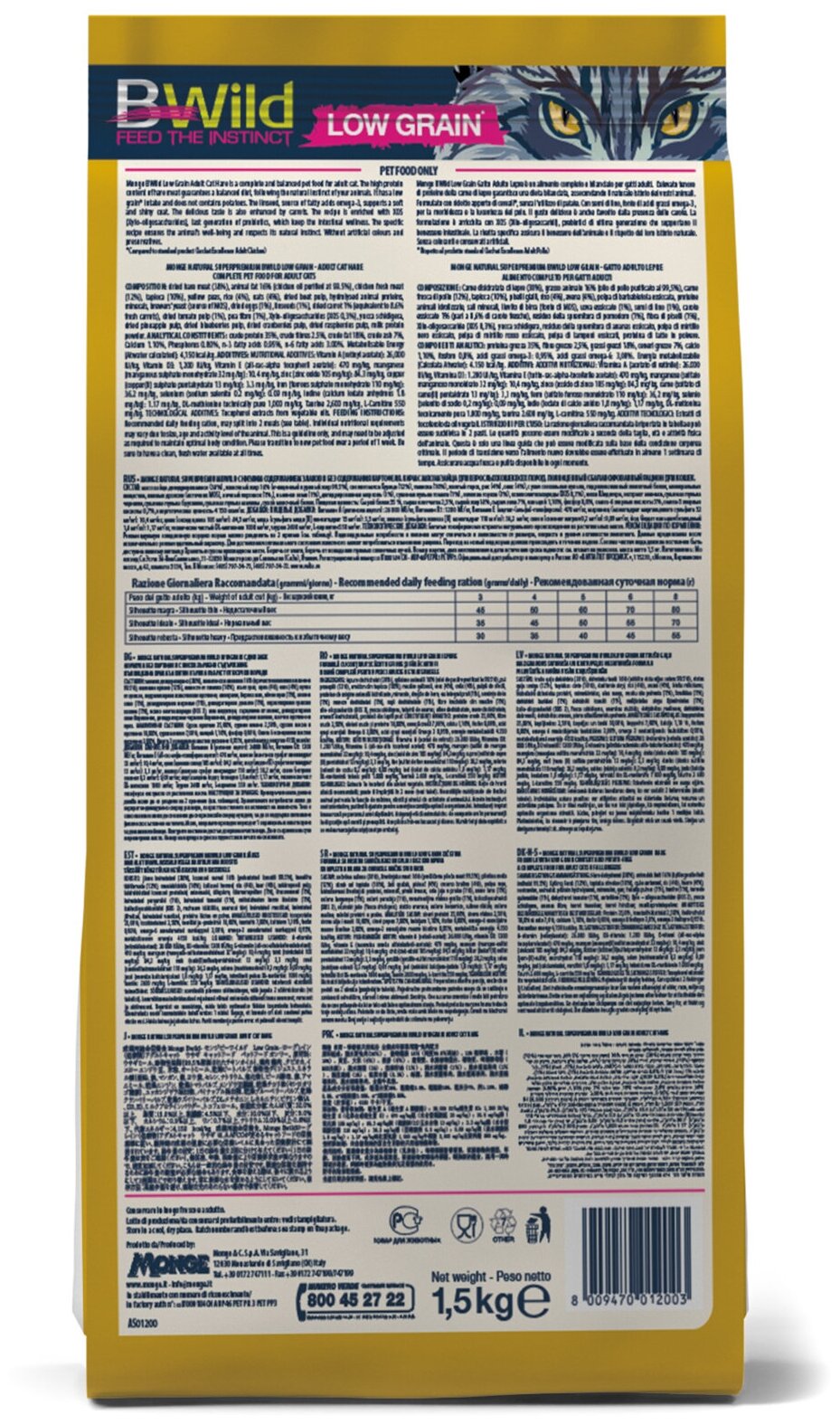 MONGE BWILD LOW GRAIN CAT HARE низкозерновой для взрослых кошек с мясом зайца (1,5 кг х 6 шт)