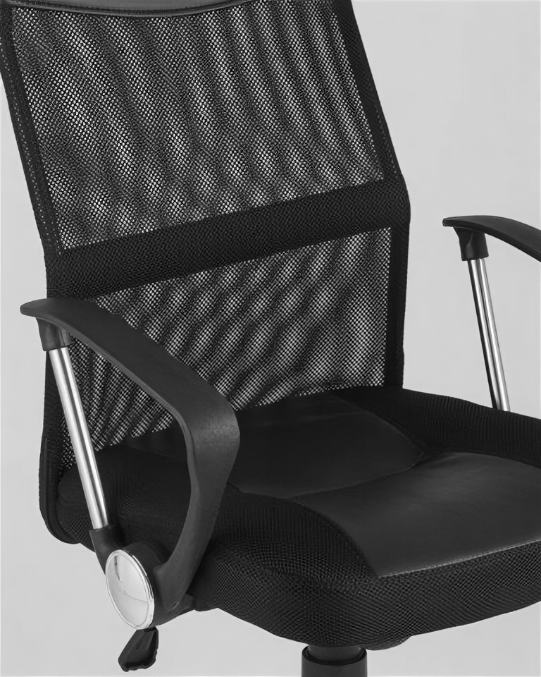 Цена для г. Сысерть. TopChairs Benefit офисное черное, обивка из сочетания экокожи, сетки и текстиля, механизм качани. Магазины в городе Сысерть смотрите ниже