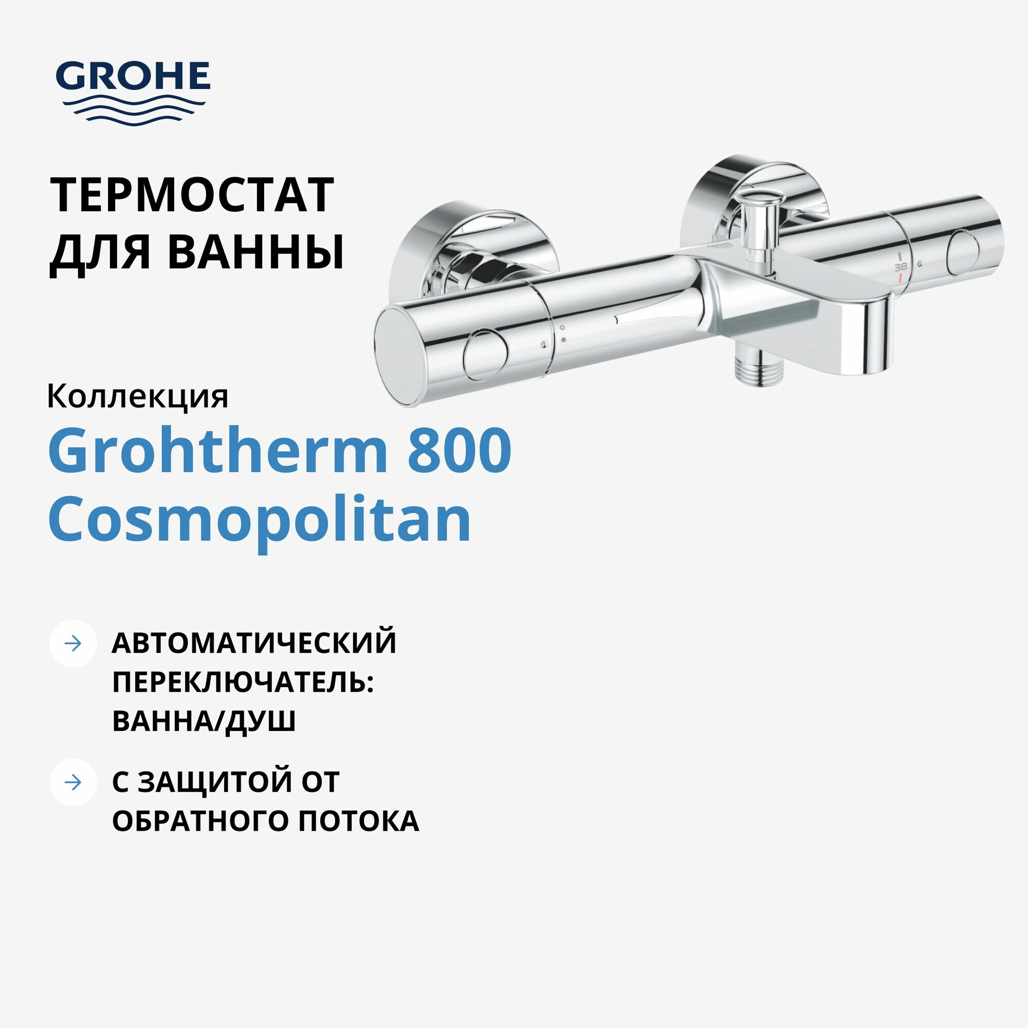 Galati Термостат для ванны GROHE Grohtherm 800 Cosmopolitan, внешний монтаж, хром (34766000) смесители в Сысерть
