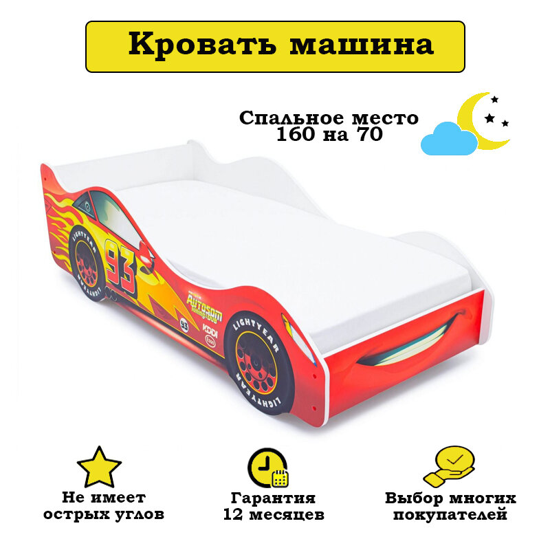 Детская кровать машина Молния с ортопедическим основанием и бортиком