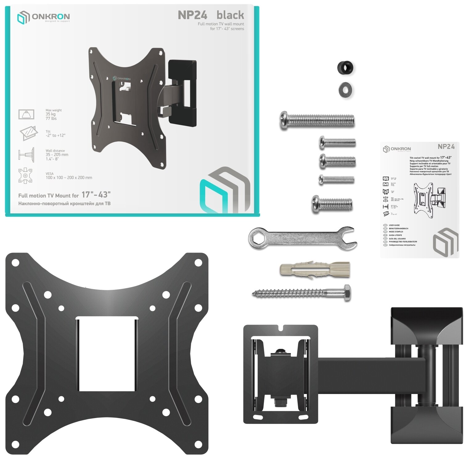Кронштейн для телевизора Onkron NP24 настенный, наклонно-поворотный, 17-43 дюйма, черный