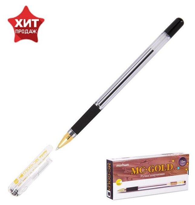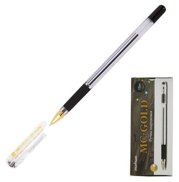 Ручка шариковая MC Gold, узел 0.5 мм, чернила чёрные, штрихкод на ручке, 12 шт.