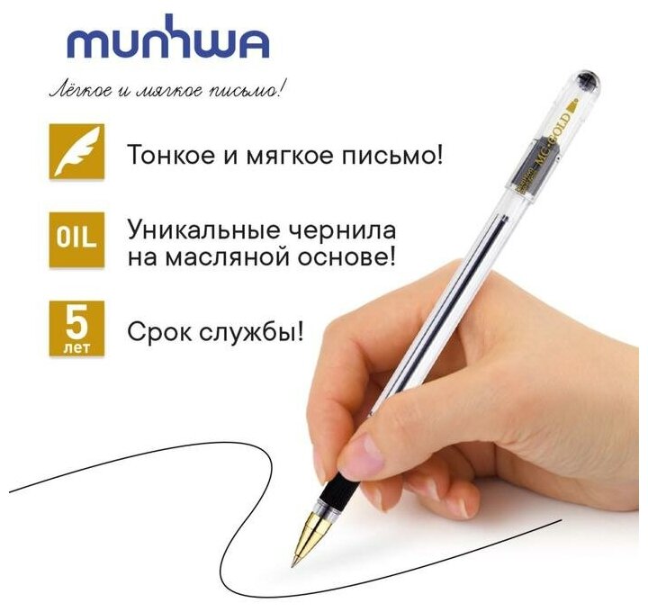 Ручка шариковая MunHwa MC Gold, узел 0,5 мм, чернила чёрные, штрихкод на ручке
