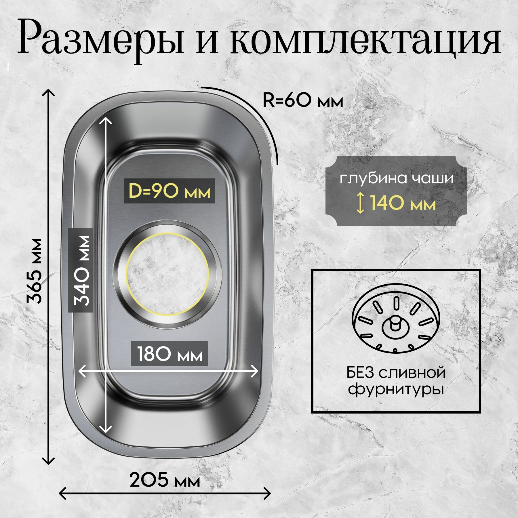 Мойка для кухни TOPZERO Undermount (D180. G8K) Сталь Нержавеющая