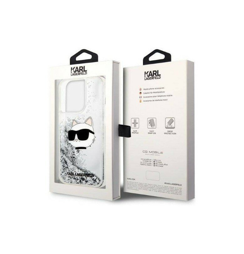 Чехол CG Mobile Karl Lagerfeld Liquid glitter NFT Choupette head Hard для iPhone 14 Pro Max, цвет Серебристый (KLHCP14XLNCHCS)