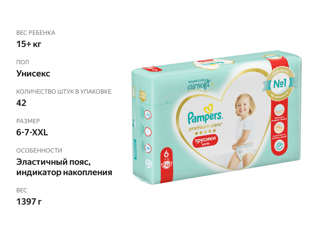 Трусики Pampers Premium Care 15кг+, размер 6, 42 шт