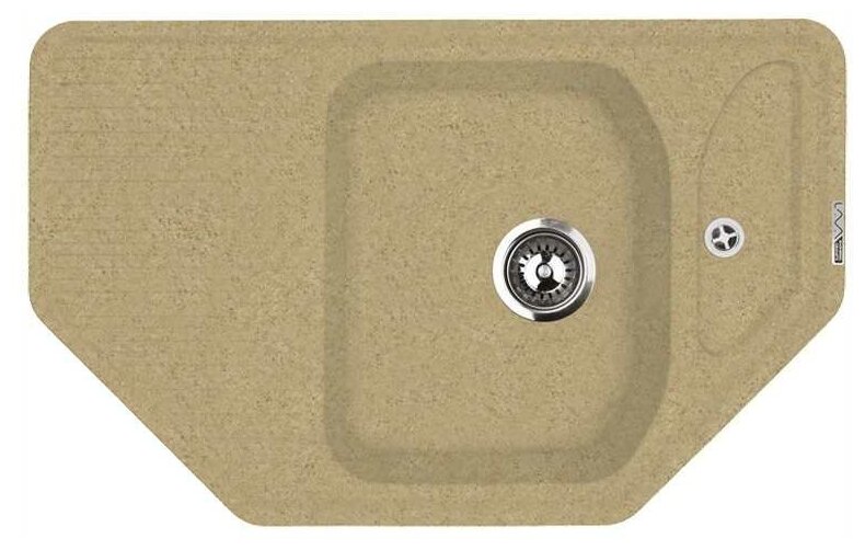 Цена для г. Сысерть. Гранитная мойка A.1 - компактная угловая модель с глубиной чаши 21 см, удобным крылом и необычным расположением переливного отверстия. Возможна установка не только в угловую кухню, но и в прямую столешницу. (Ширина угловой тумбы должна быть не менее 900 х 900 мм ) Имеется одно отверстие под смеситель. Прочный металлический крепеж, установленный на мойке, обеспечивает надежную её фиксацию в столешнице. Минимальная толщина стенок мойки - 8 мм. Мойка укомплектована сливной арматурой. Магазины в городе Сысерть смотрите ниже