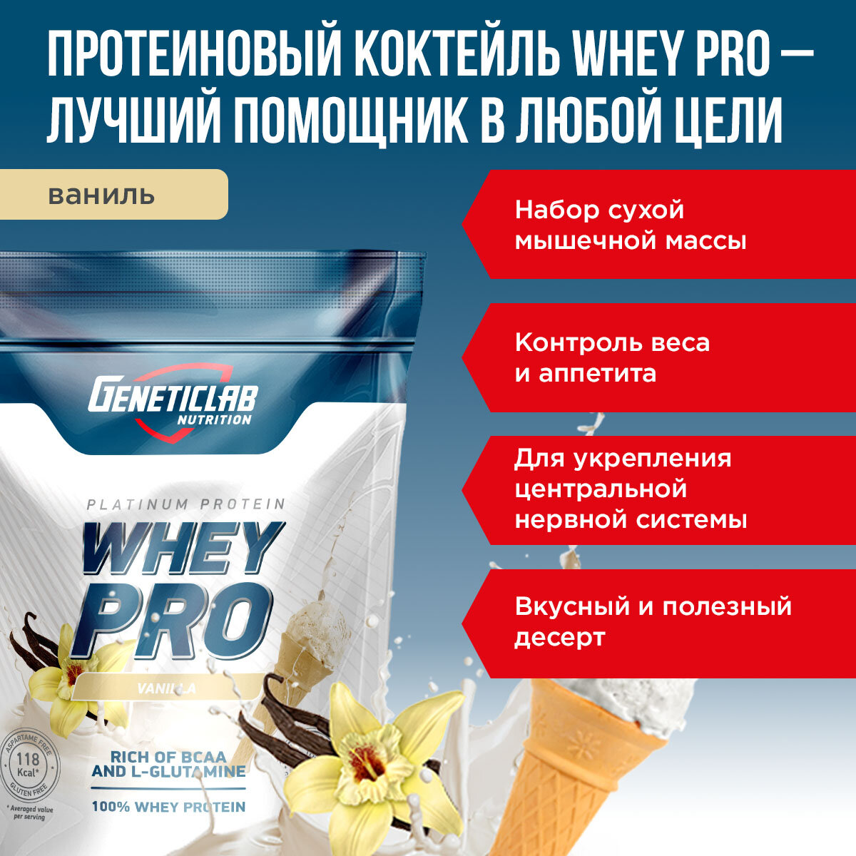 Протеин GeneticLab Nutrition Whey Pro 1000г, ваниль, концентрат сывороточного протеина