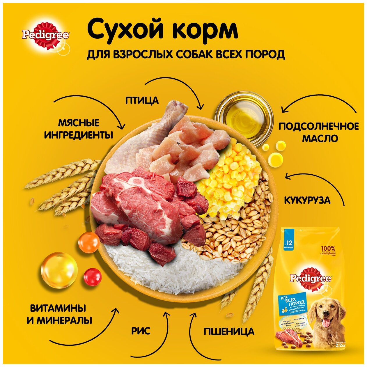 Сухой корм Pedigree для взрослых собак всех пород, говядина, 2,2 кг. Pedigree