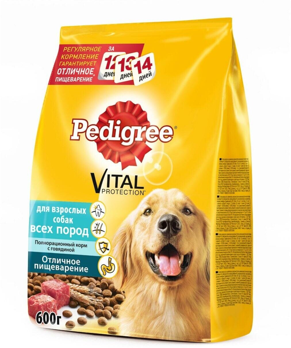 Сухой корм Pedigree для взрослых собак всех пород, говядина, 600 г